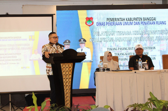 Dinas Pekerjaan Umum dan Penataan Ruang (PUPR) Kabupaten Banggai melaksanakan pelatihan untuk tenaga kerja konstruksi kualifikasi jabatan operator jenjang 1, yang berlangsung selama dua hari tanggal 23 – 24 Oktober 2025, yaitu hari pertama untuk pembelajaran di kelas dan hari kedua untuk praktek k...
