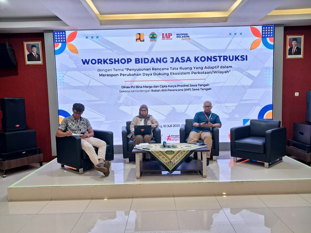 Mengingat pentingnya pemahaman tenaga kerja konstruksi, khususnya para ahli perencana tata ruang wilayah dan kota dalam merespon perubahan daya dukung ekosistem perkotaan/wilayah kaitannya terhadap penyusunan rencana tata ruang yang adaptif, maka pada Kamis (10/07/2025) Dinas Pekerjaan Umum Bina Marga dan Cipta Karya Provinsi Jawa Tengah yang mempunyai tugas dan kewenangan pembinaan kepada masyarakat jasa konstruksi, berkerja sama dengan Ikatan Ahli Perencana (IAP) Provinsi Jawa Tengah berinisiasi menyelenggarakan Workshop Bidang Jasa Konstruksi dengan tema “Penyusunan Rencana Tata Ruang Yang Adaptif dalam Merespon Perubahan Daya Dukung Ekosistem Perkotaan/Wilayah”.