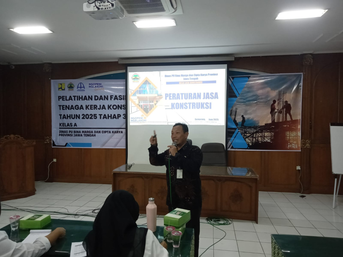 Undang-Undang Nomor 2 Tahun 2017 tentang Jasa Konstruksi telah mengamanatkan bahwa Pemerintah Provinsi memiliki kewenangan untuk menyelenggarakan pelatihan bagi tenaga ahli jasa konstruksi. Oleh karena itu guna mendukung pelaksanaan pembangunan infrastruktur yang membutuhkan banyak tenaga kerja konstruksi yang berkompeten, Dinas PU Bina Marga dan Cipta Karya Provinsi Jawa Tengah selaku OPD sub urusan jasa konstruksi menyelenggarakan Pelatihan dan Fasilitasi Sertifikasi Tenaga Kerja Konstruksi Kualifikasi Ahli Tahun 2025 Tahap 3. Kegiatan ini dilaksanakan bekerja sama dengan Asosiasi Profesi Perkumpulan Tenaga Teknik Konstruksi Indonesia (ASTEKINDO).