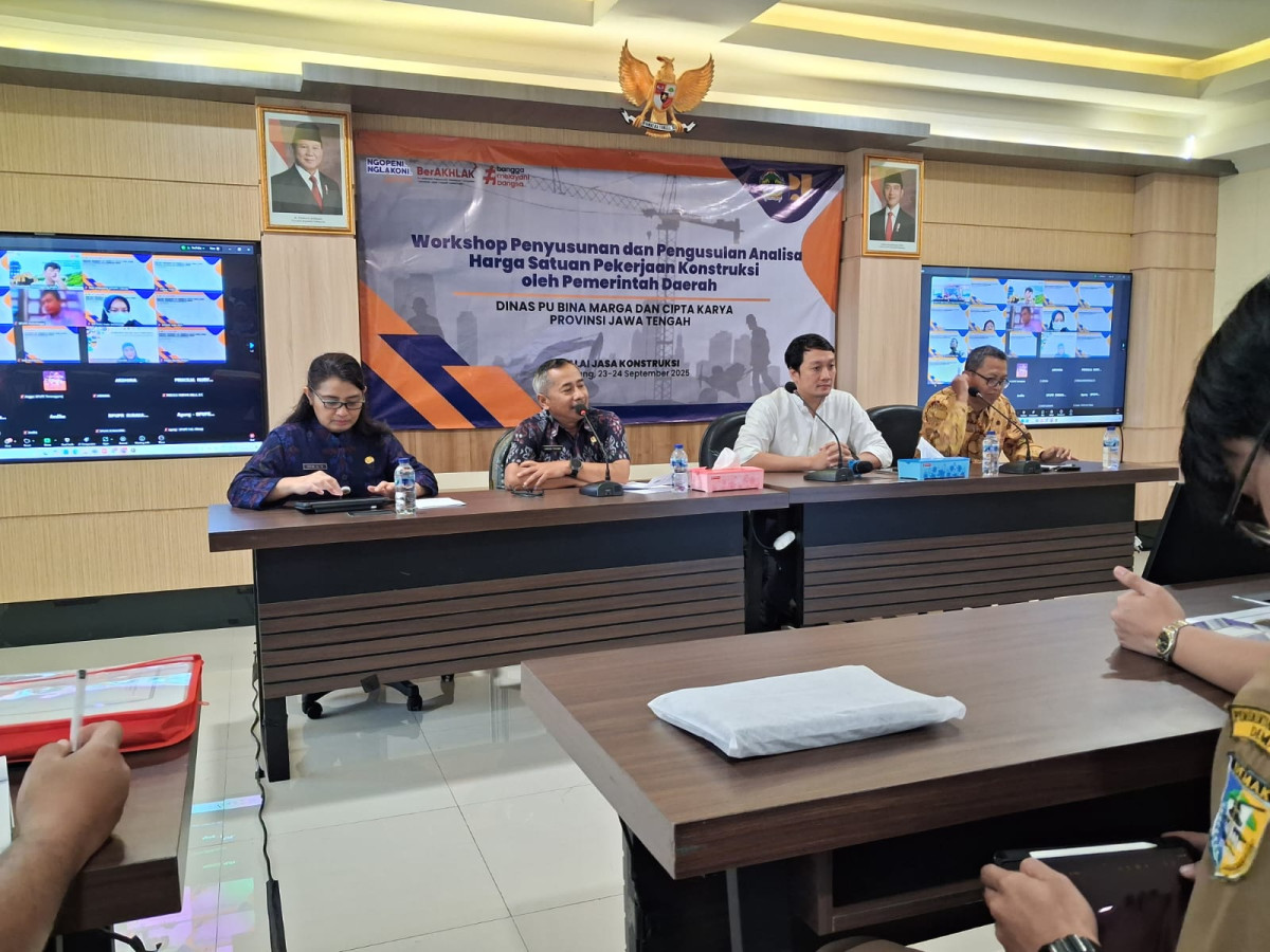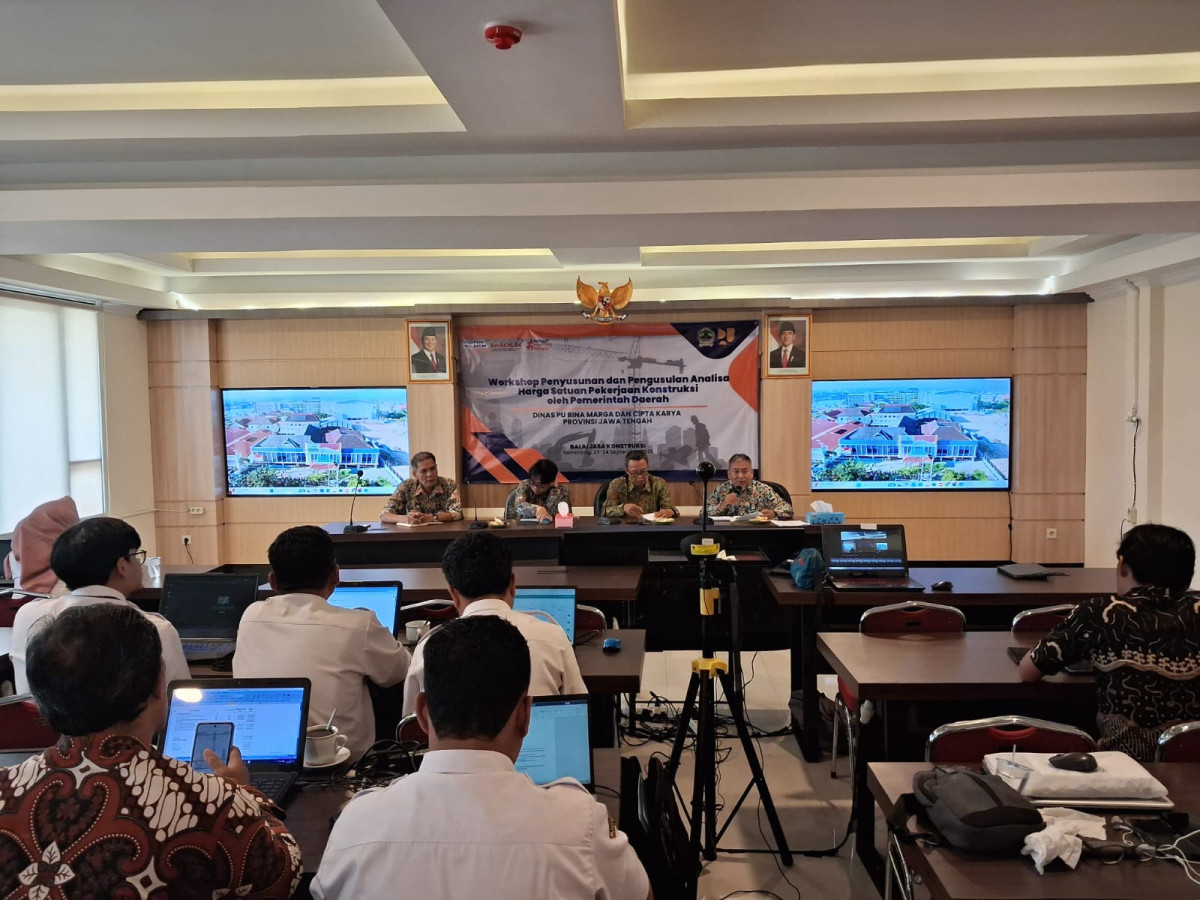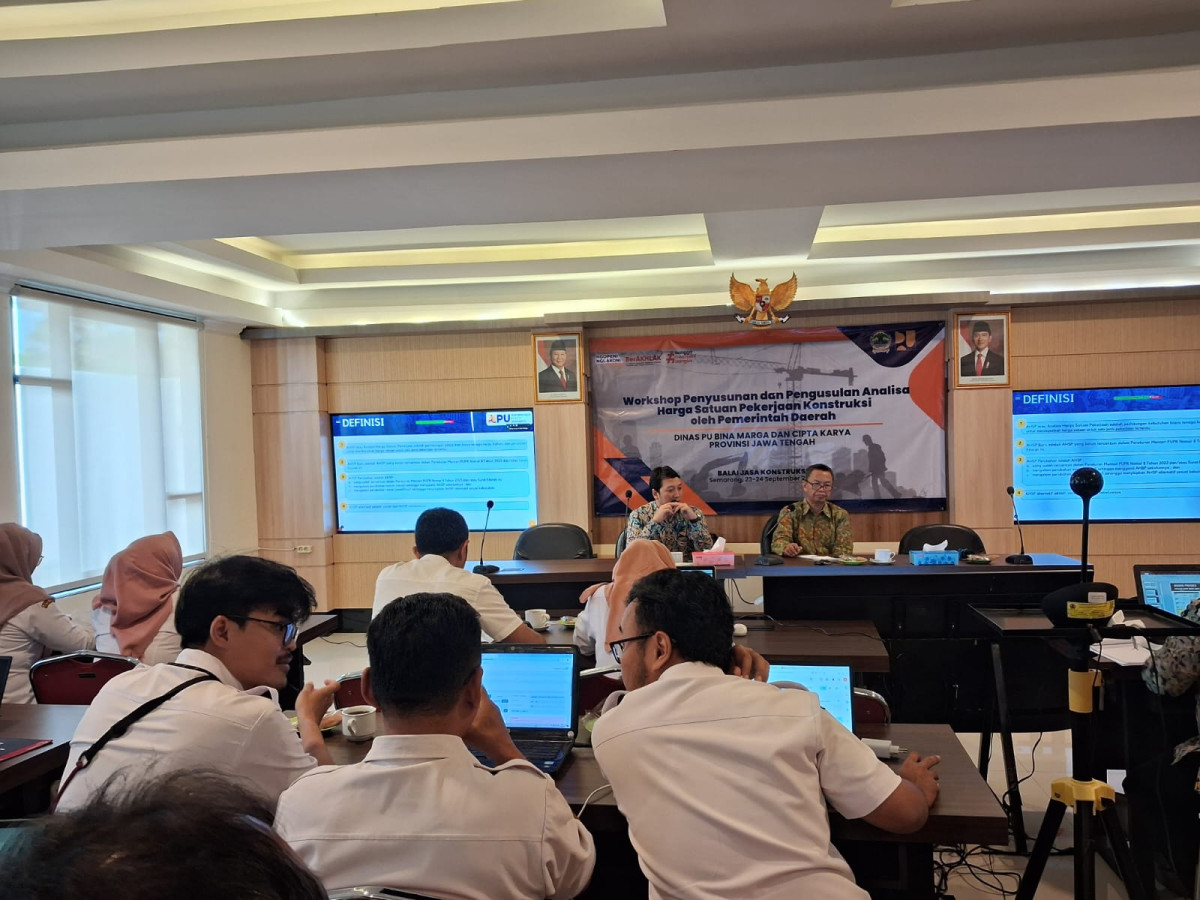 Sesuai dengan amanat UU No. 2 Tahun 2017, Pemerintah Provinsi memiliki tugas dan wewenang dalam pembinaan jasa konstruksi yang meliputi pengaturan, pemberdayaan dan pengawasan cakupan Provinsi. Salah satu wewenang Pemerintah Provinsi Jawa Tengah adalah melaksanakan pembinaan kepada masyarakat jasa konstruksi, termasuk di dalamnya adalah pengguna jasa yaitu OPD Sub-Urusan Jasa Konstruksi Tingkat Kabupaten/Kota. Oleh karena, itu Dinas Pekerjaan Umum Bina Marga dan Cipta Karya Provinsi Jawa Tengah selaku pembina jasa konstruksi tingkat provinsi dalam rangka meningkatkan kapasitas dan kompetensi personil Dinas Pekerjaan Umum Kabupaten/Kota yang menangani penyusunan HSD dan HSPK pada Selasa (23/9/2025) hingga Rabu (24/9/2025) menyelenggarakan Workshop Bidang Jasa Konstruksi dengan tema “Penyusunan dan Pengusulan Analisa Harga Satuan Pekerjaan Konstruksi oleh Pemerintah Daerah” di Kantor Dinas PU Bina Marga dan Cipta Karya Provinsi Jawa Tengah.