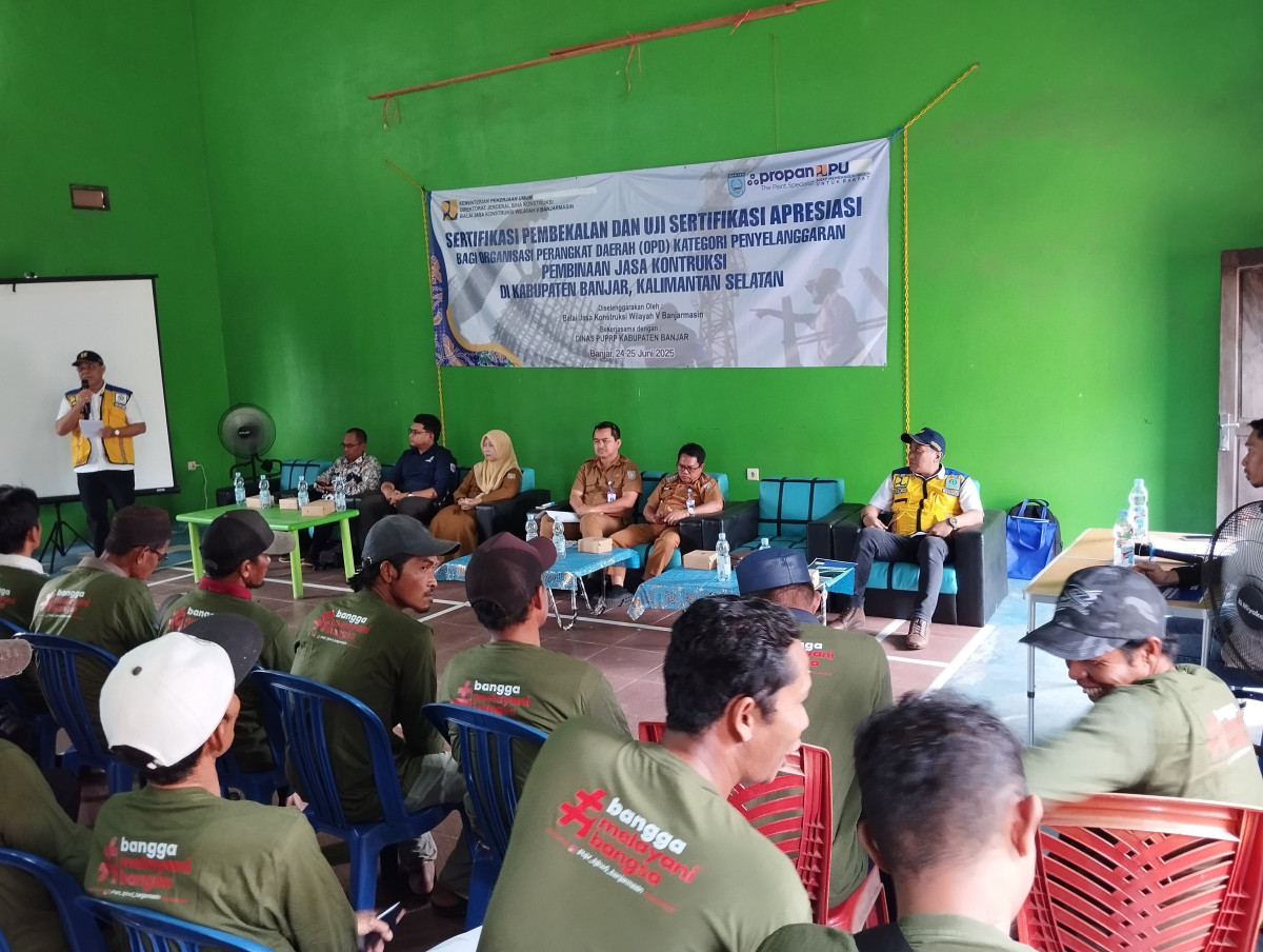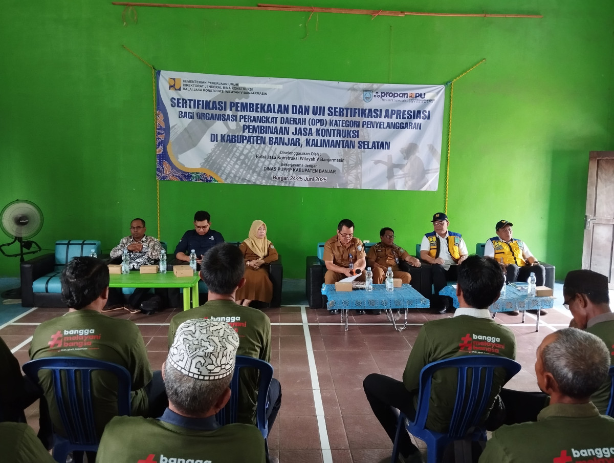Pembekalan dan Uji Sertifikasi Apresiasi Bagi (OPD) Kategori Penyelenggaraan Pembinaan Jasa Konstruksi yang diselenggarakan oleh Balai Jasa Konstruksi Wilayah V Banjarmasin bekerjasama dengan Dinas Pekerjaan Umum, Penataan Ruang dan Pertanahan Kabupaten Banjar.