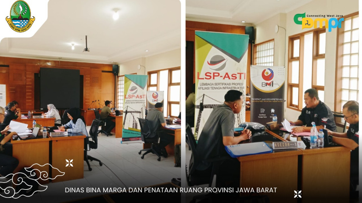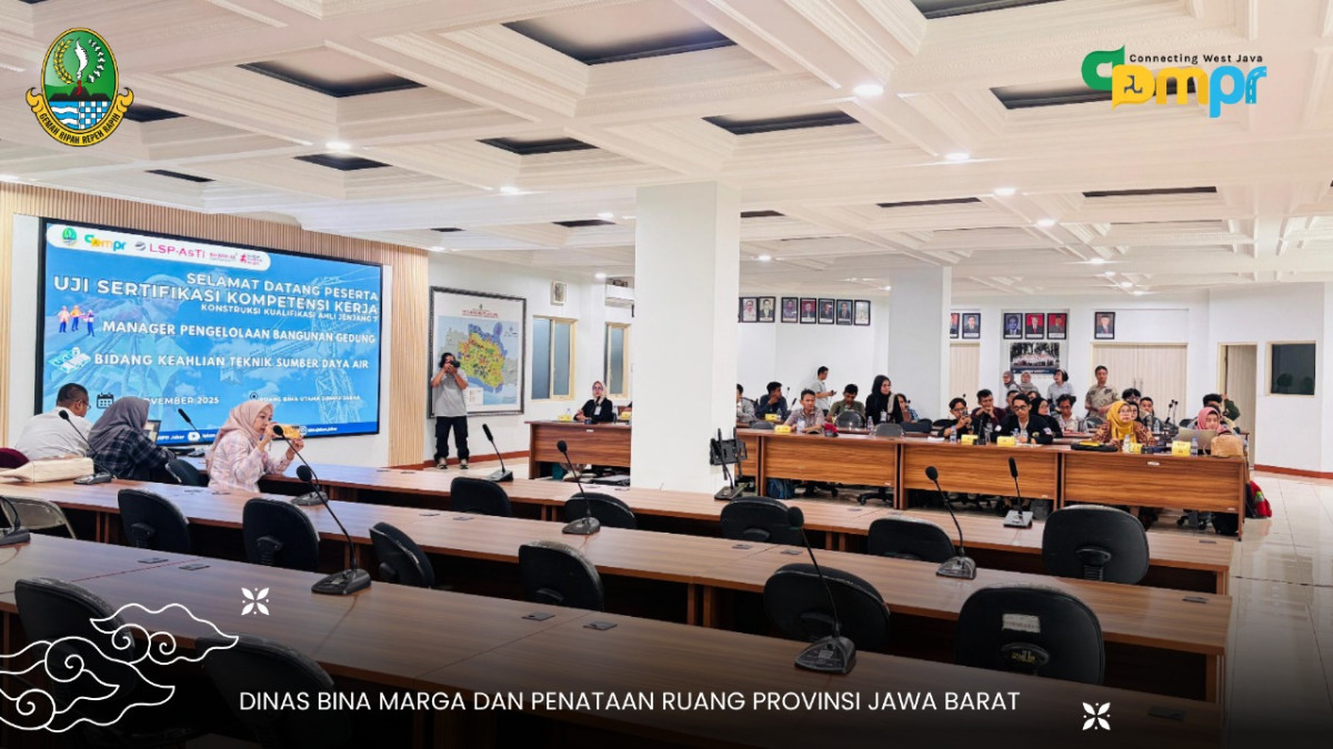 Sebanyak 36 peserta Uji Sertifikasi Kompetensi Kerja - Jenjang 7 Reguler dengan Skema Sertifikasi Manajer Pengelolaan Bangunan Gedung dan Ahli Muda Bidang Keahlian Teknik Sumber Daya Air diselenggarakan oleh Lembaga Sertifikasi Profesi Afiliasi Tenaga (LSP AsTI) dengan Dinas Binamarga dan Penataan Ruang (BMPR) Provinsi Jawa Barat, dan dibukan oleh Kepala Bidang Jasa Konstruksi Dinas BMPR, Suparyo, Sabtu (8/11/2025) di RR Bimautama Dinas BMPR Jalan Asia Afrika No,79 Bandung.