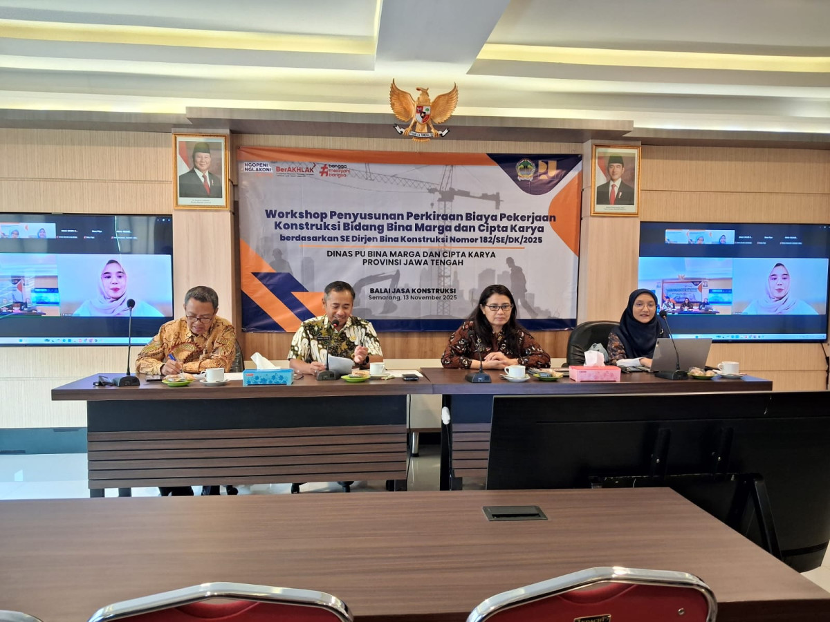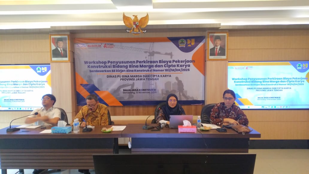 SE Dirjen Bina Konstruksi Nomor 182/SE/DK/2025 diterbitkan sebagai tindak lanjut dari kebutuhan penyesuaian dan penyempurnaan analisis harga satuan pekerjaan konstruksi, baik di bidang Bina Marga, Cipta Karya maupun Sumber Daya Air. Perubahan ini tidak hanya bersifat administratif, tetapi juga teknis, yang mencakup penambahan dan revisi pada item pekerjaan, produktivitas tenaga kerja, penggunaan peralatan, hingga pembaruan harga bahan yang mengikuti perkembangan kondisi terkini di lapangan. Oleh karena, itu Dinas Pekerjaan Umum Bina Marga dan Cipta Karya Provinsi Jawa Tengah selaku pembina jasa konstruksi tingkat provinsi dalam rangka meningkatkan kapasitas dan kompetensi personil Dinas Pekerjaan Umum Kabupaten/Kota terkait peraturan terbaru penyusunan HSD dan HSPK, menyelenggarakan Workshop Bidang Jasa Konstruksi dengan tema “Workshop Penyusunan Perkiraan Biaya Pekerjaan Konstruksi Bidang Bina Marga dan Cipta Karya berdasarkan SE Dirjen Bina Konstruksi Nomor 182/SE/DK/2025” pada Kamis (13/11/205) di Kantor Dinas PU Bina Marga dan Cipta Karya Provinsi Jawa Tengah.