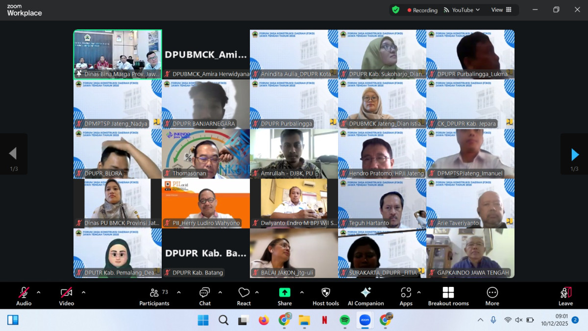 Kegiatan Forum Jasa Konstruksi Daerah (FJKD) Jawa Tengah Tahun 2025 ini dilaksanakan secara daring dengan mengundang berbagai unsur masyarakat jasa konstruksi yang terdiri atas unsur Instansi Pemerintah dan Lembaga, Asosiasi Badan Usaha, Asosiasi Profesi, Perguruan Tinggi, serta Mitra Usaha Jasa Konstruksi di Provinsi Jawa Tengah. Narasumber pada kegiatan ini adalah dari Direktorat Usaha dan Kelembagaan jasa Konstruksi, Kementerian PU serta Ketua Asosiasi Badan Usaha GAPENSI dan INKINDO Jawa Tengah.