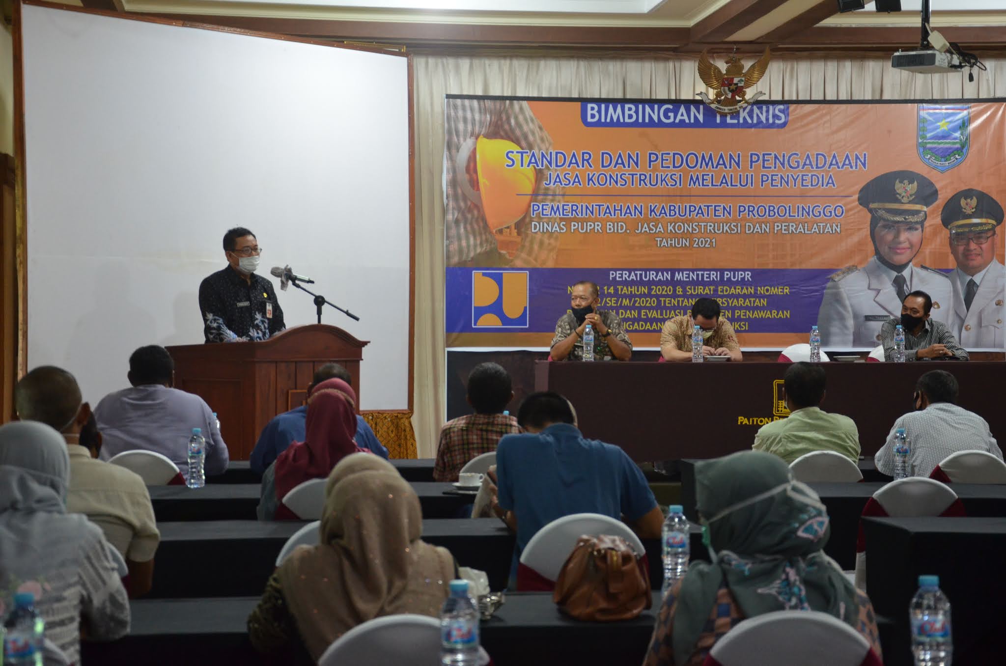 Paiton, Lensaupdate.com – Dinas Pekerjaan Umum dan Penataan Ruang (DPUPR) Kabupaten Probolinggo memberikan sosialisasi Peraturan Menteri Pekerjaan Umum dan Perumahan Rakyat (Permen-PUPR) RI Nomor 14 Tahun 2020 Tentang Standar dan Pedoman Pengadaan Jasa Konstruksi Melalui Penyedia dan Surat Edaran Menteri PUPR Nomor 22 Tahun 2020 Tentang Persyaratan Pemilihan dan Evaluasi Dokumen Penawaran Pengadaan Jasa Konstruksi sesuai Permen-PUPR Nomor 14 Tahun 2020, Kamis (25/3/2021).