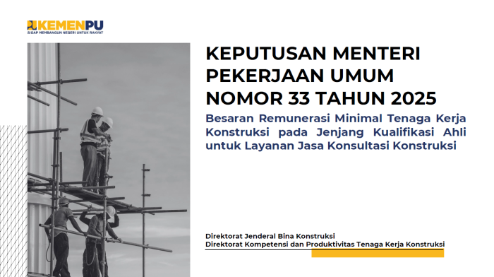 Sosialisasi Keputusan Menteri PU No. 33 Tahun 2025 tentang Besaran Remunerasi Minimal Tenaga Kerja Konstruksi pada Jenjang Kualifikasi Ahli untuk Layanan Jasa Konsultansi Konstruksi