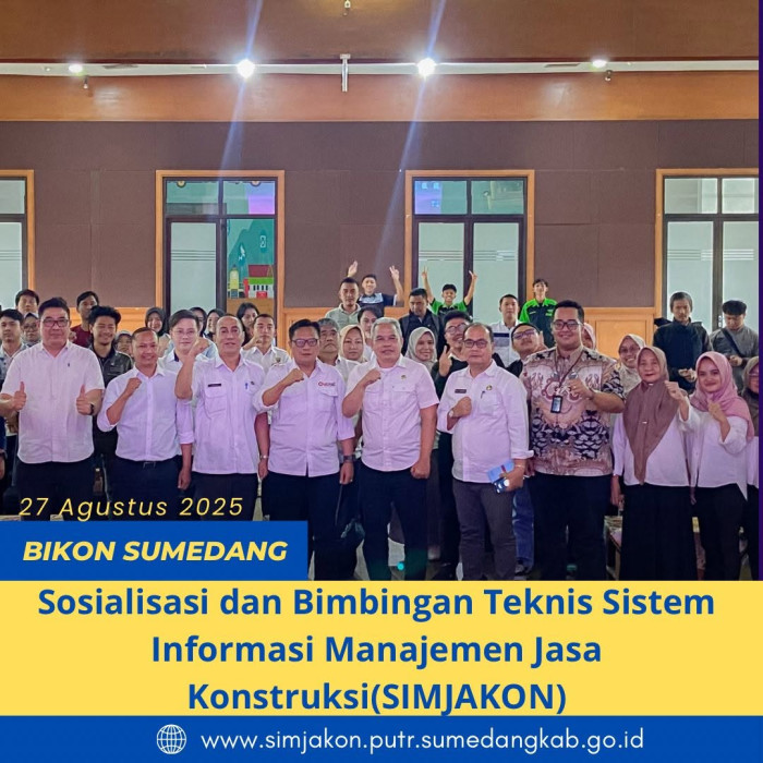 Dalam rangka mendukung transformasi digital serta memperluas penyebarluasan layanan data dan informasi terkait jasa konstruksi, Dinas Pekerjaan Umum dan Tata Ruang (DPUTR) Kabupaten Sumedang melalui Bidang Bina Konstruksi menyelenggarakan Sosialisasi dan Bimbingan Teknis Sistem Informasi Manajemen J...