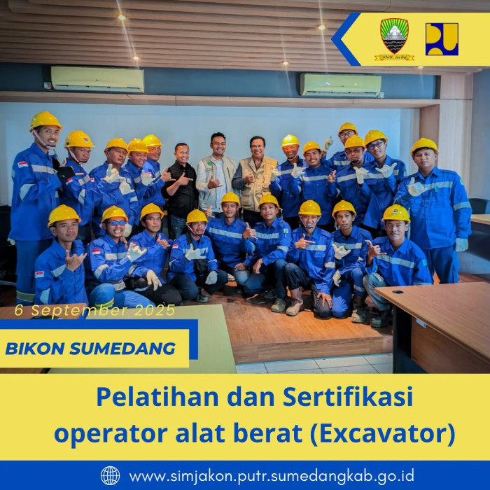 Dalam upaya meningkatkan kapasitas soft skill dan hard skill tenaga operator alat berat, Bidang Bina Konstruksi DPUTR Kabupaten Sumedang mengirimkan 4 orang tenaga terampil untuk mengikuti Pelatihan dan Sertifikasi Operator Excavator. Peserta terdiri dari: 3 orang dari UPTD Workshop Dinas PUTR...