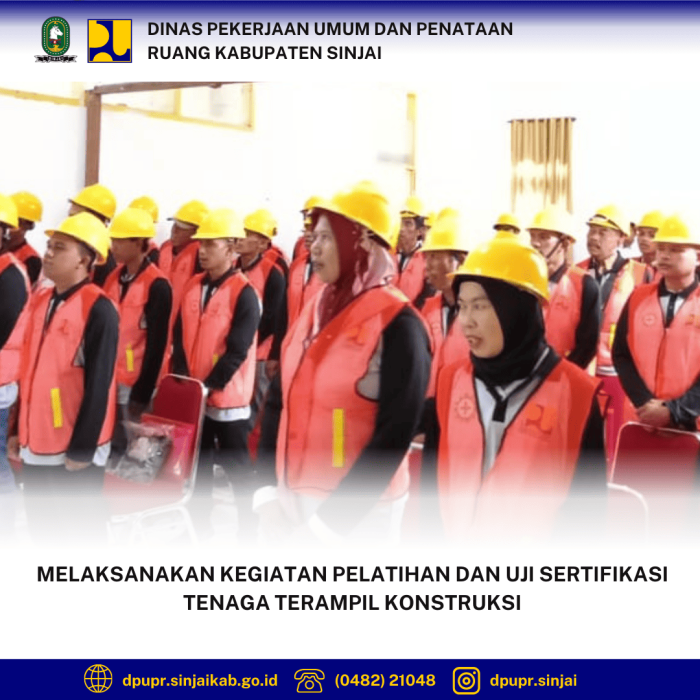 Dinas Pekerjaan Umum dan Penataan Ruang Kabupaten Sinjai melalui Bidang Jasa Konstruksi membuka pendaftaran Pelatihan dan Uji Sertifikasi Tenaga Kerja Konstruksi. Pelatihan dan Uji Sertifikasi direncanakan untuk Jabatan Kerja Tukang Bata dan Plesteran dan diikuti oleh 50 Orang Peserta. Kegiatan ini...